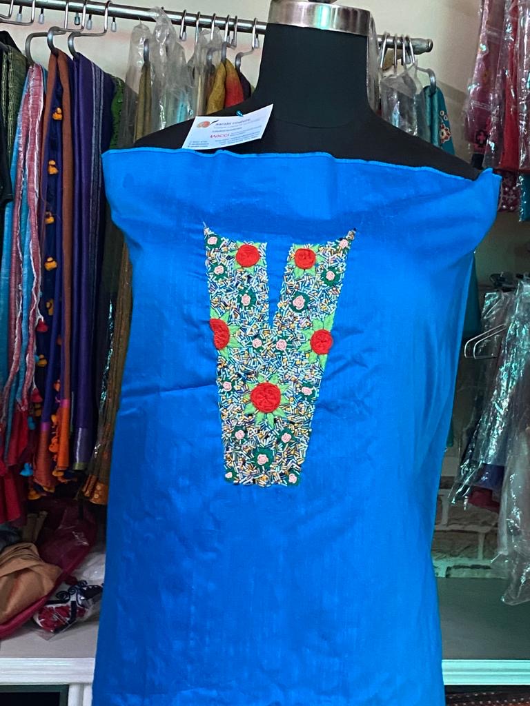 Hand embroidered Bullion rose with bead work on DHUPION Cotton material. 44X 100 inches