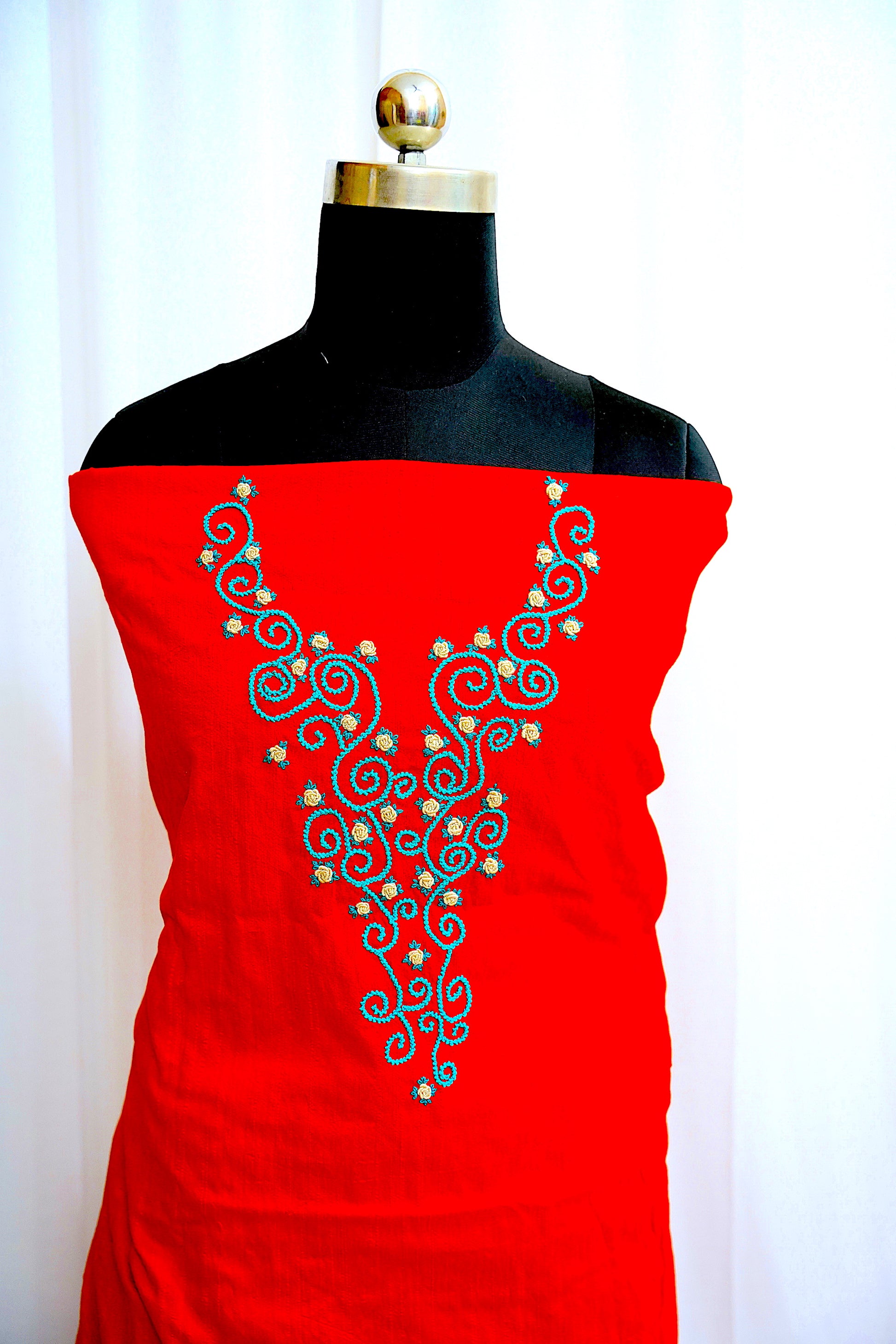 Hand embroidered Bullion rose pearl knot work on DHUPION Cotton material. 44X 100 inches