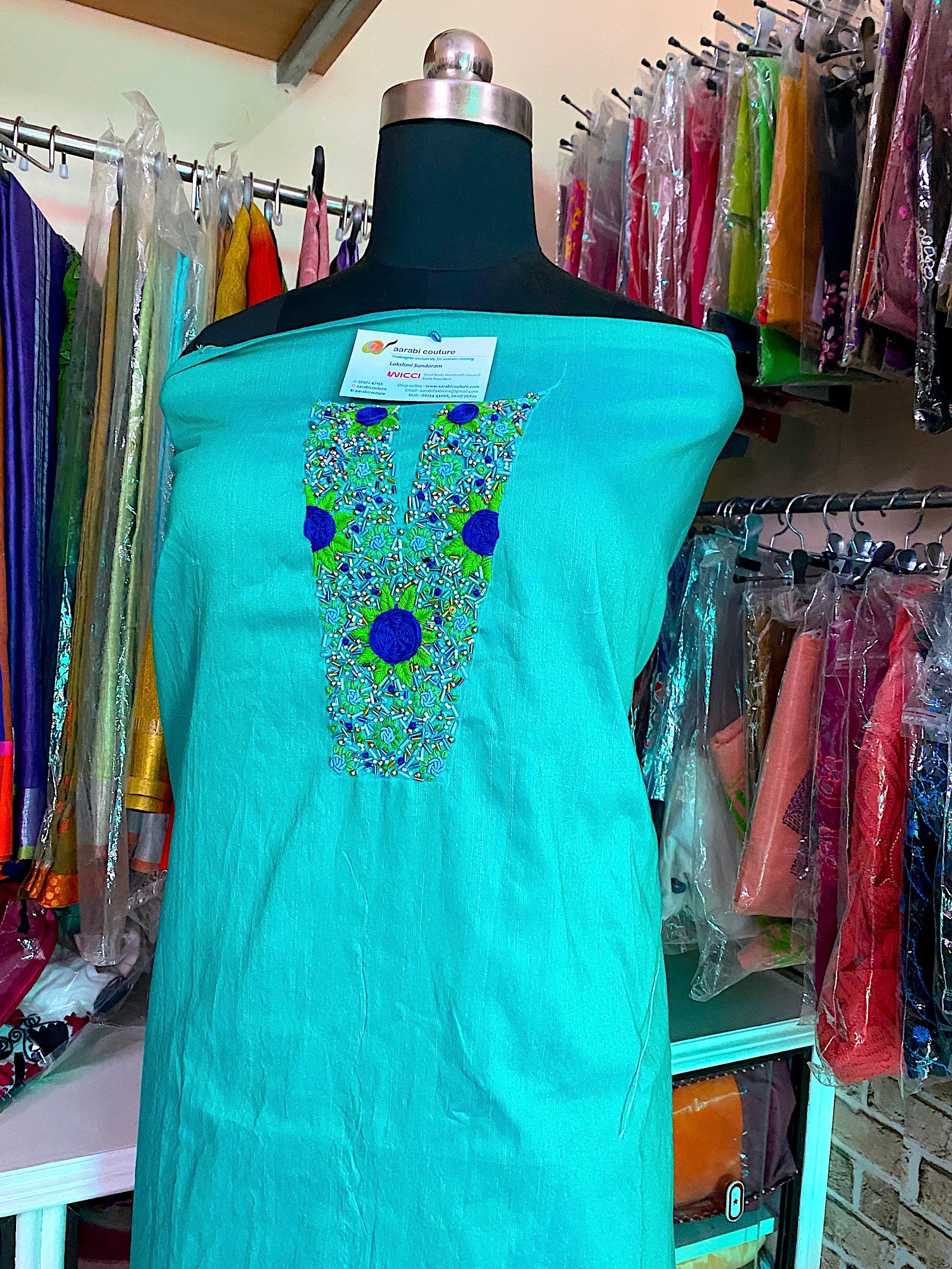Hand embroidered Kashmiri work on DHUPION Cotton material. 44X 100 inches