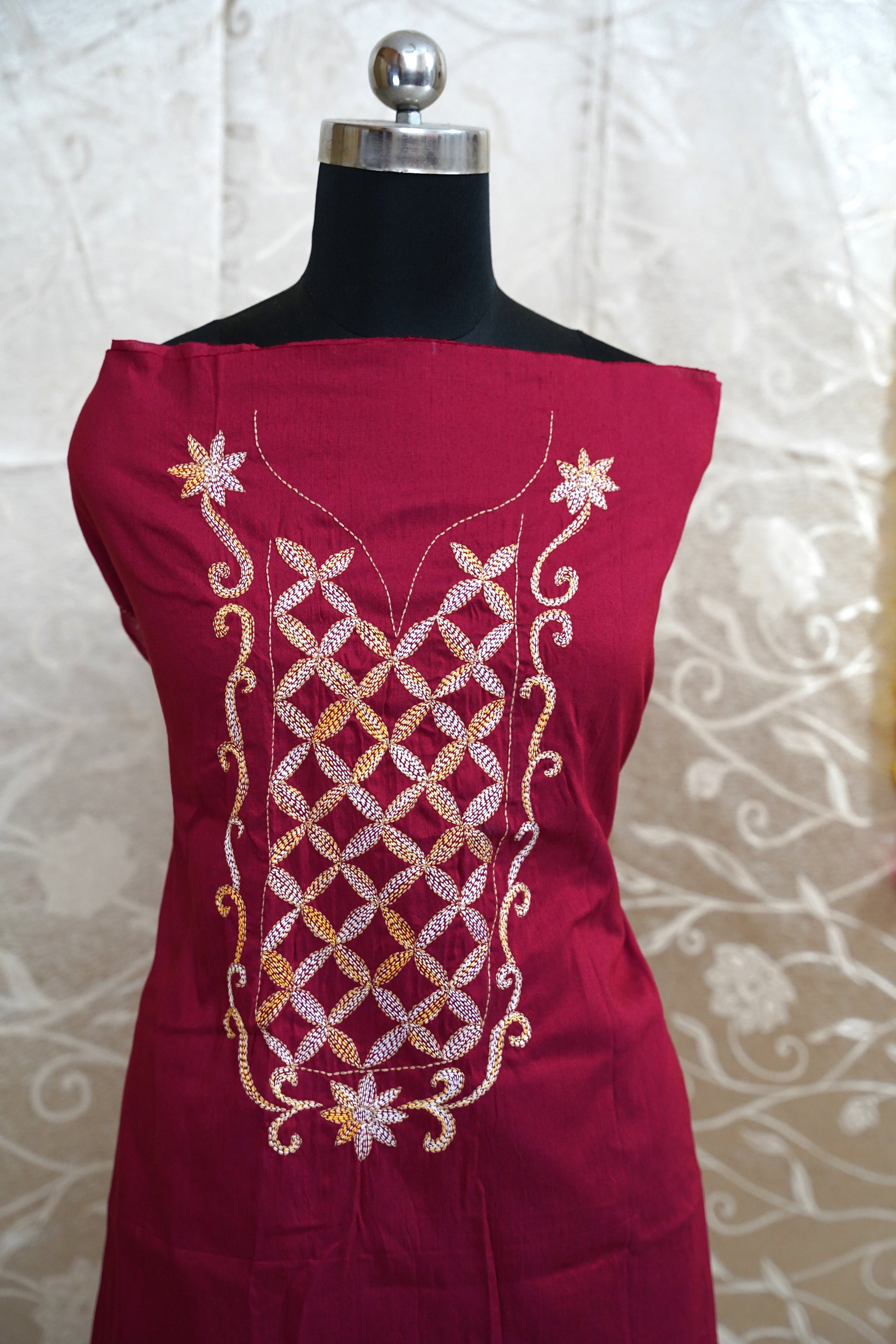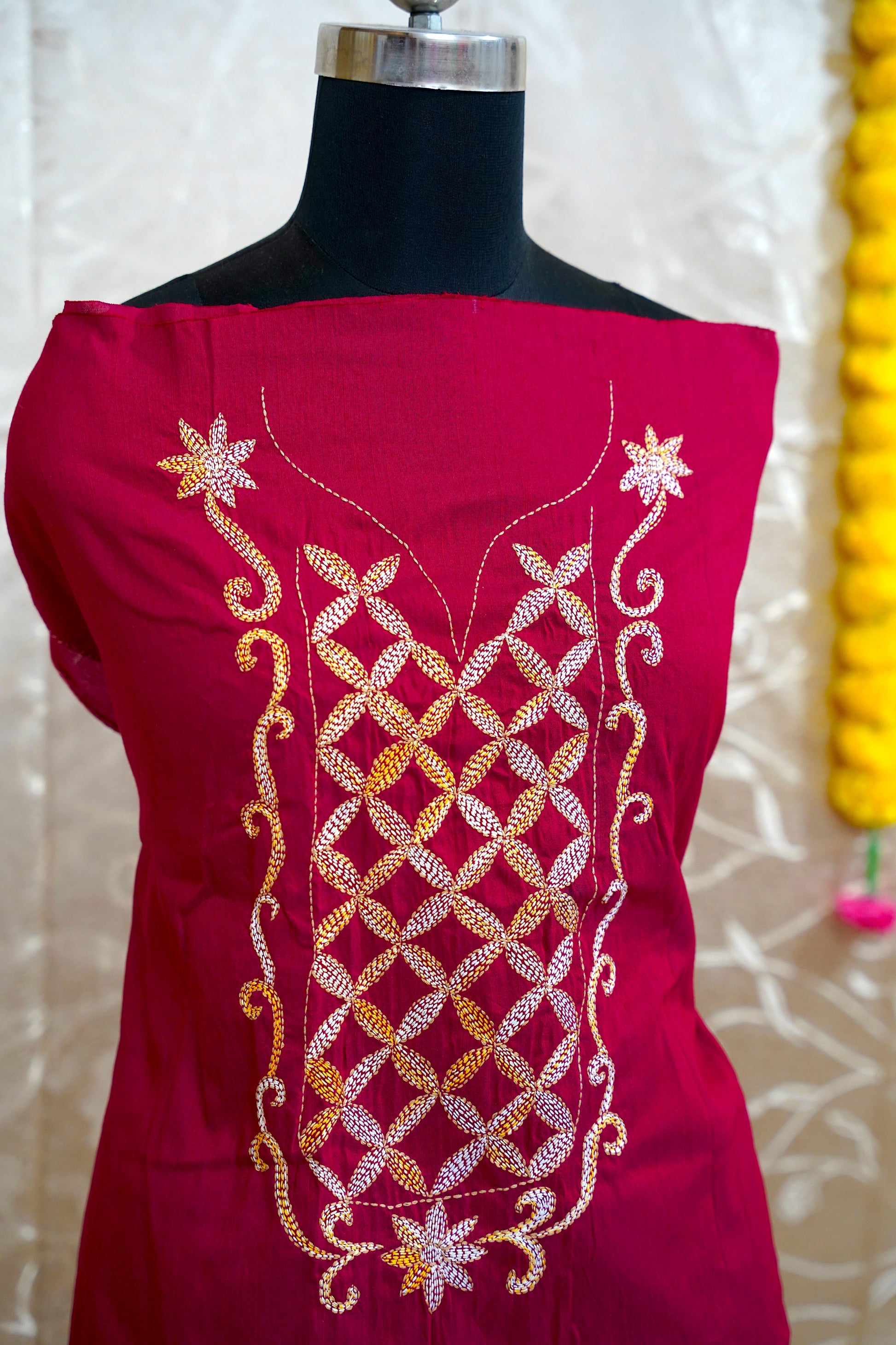 Hand embroidered Kantha work on Dhupion Cotton material. Size 44 X 100 inches