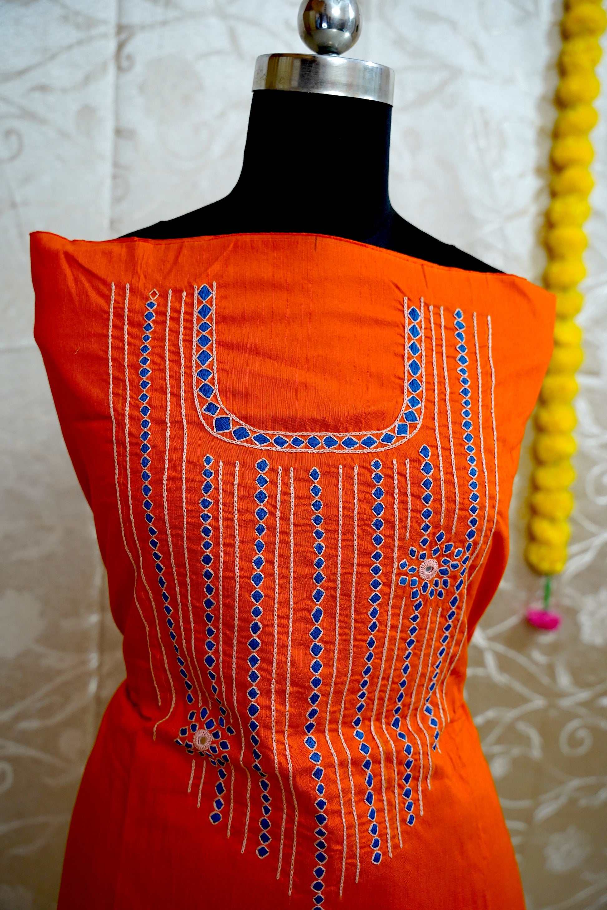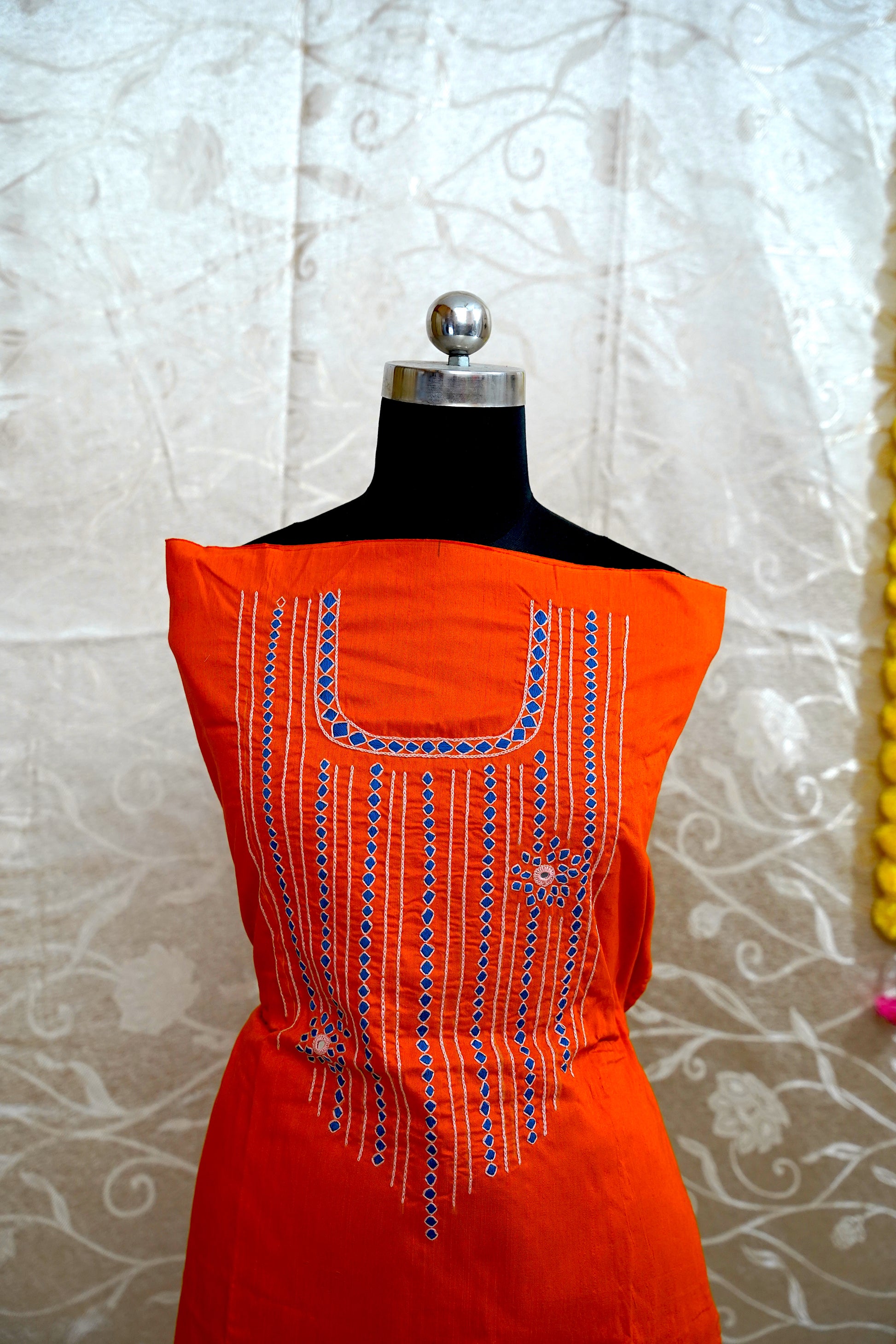Hand embroidered KASHMIRI DIAMOND work on Dhupion Cotton material 44X100 INCHESbu