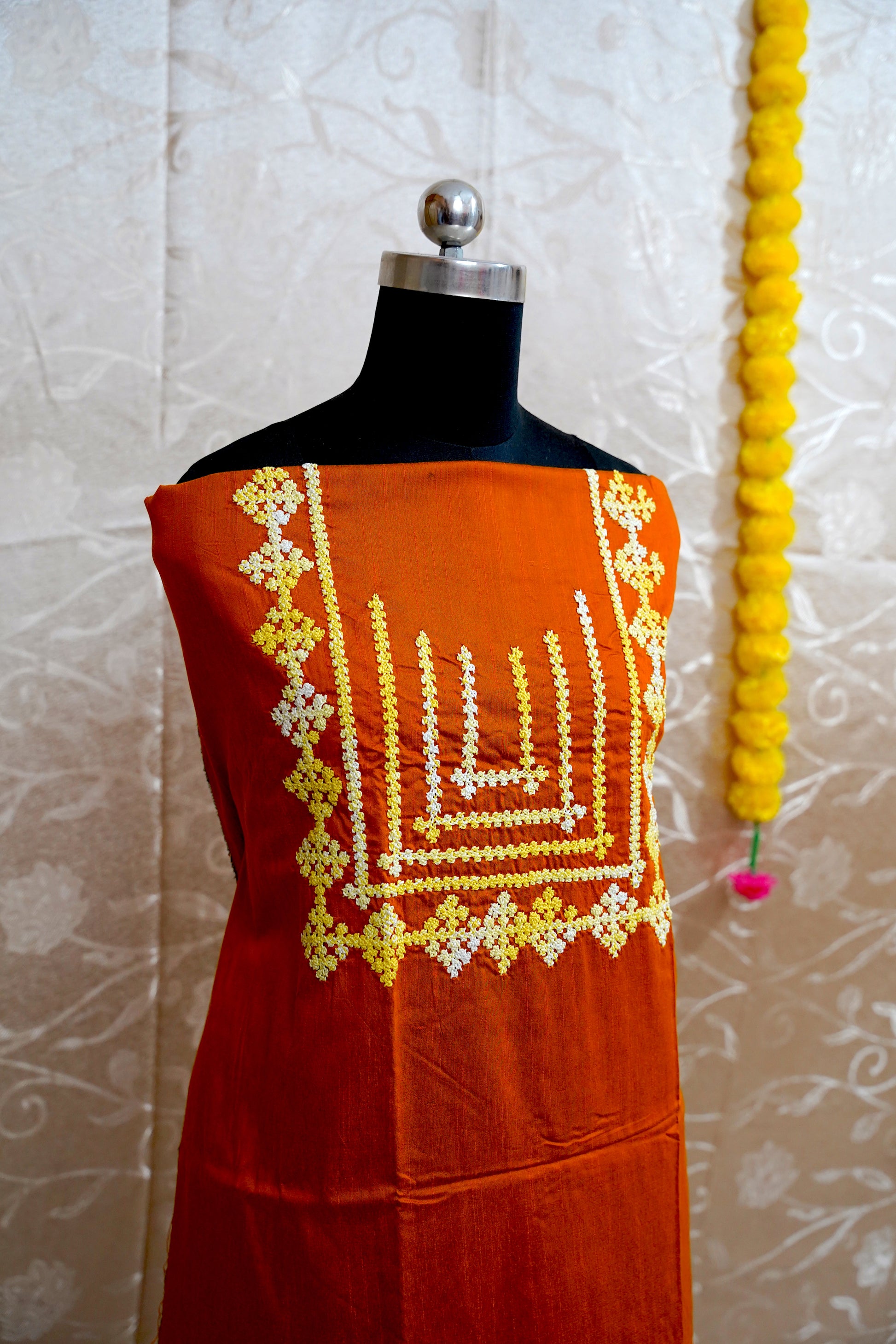 Hand embroidered KUTCH work on Dhupion Cotton material 44X100 INCHES
