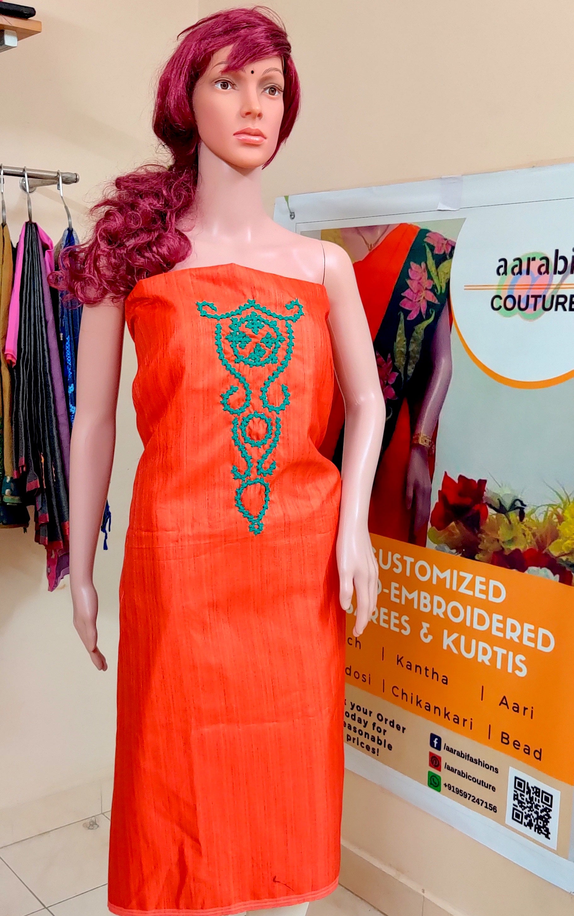 Hand embroidered KUTCH work on Dhupion Cotton material 44X100 INCHES