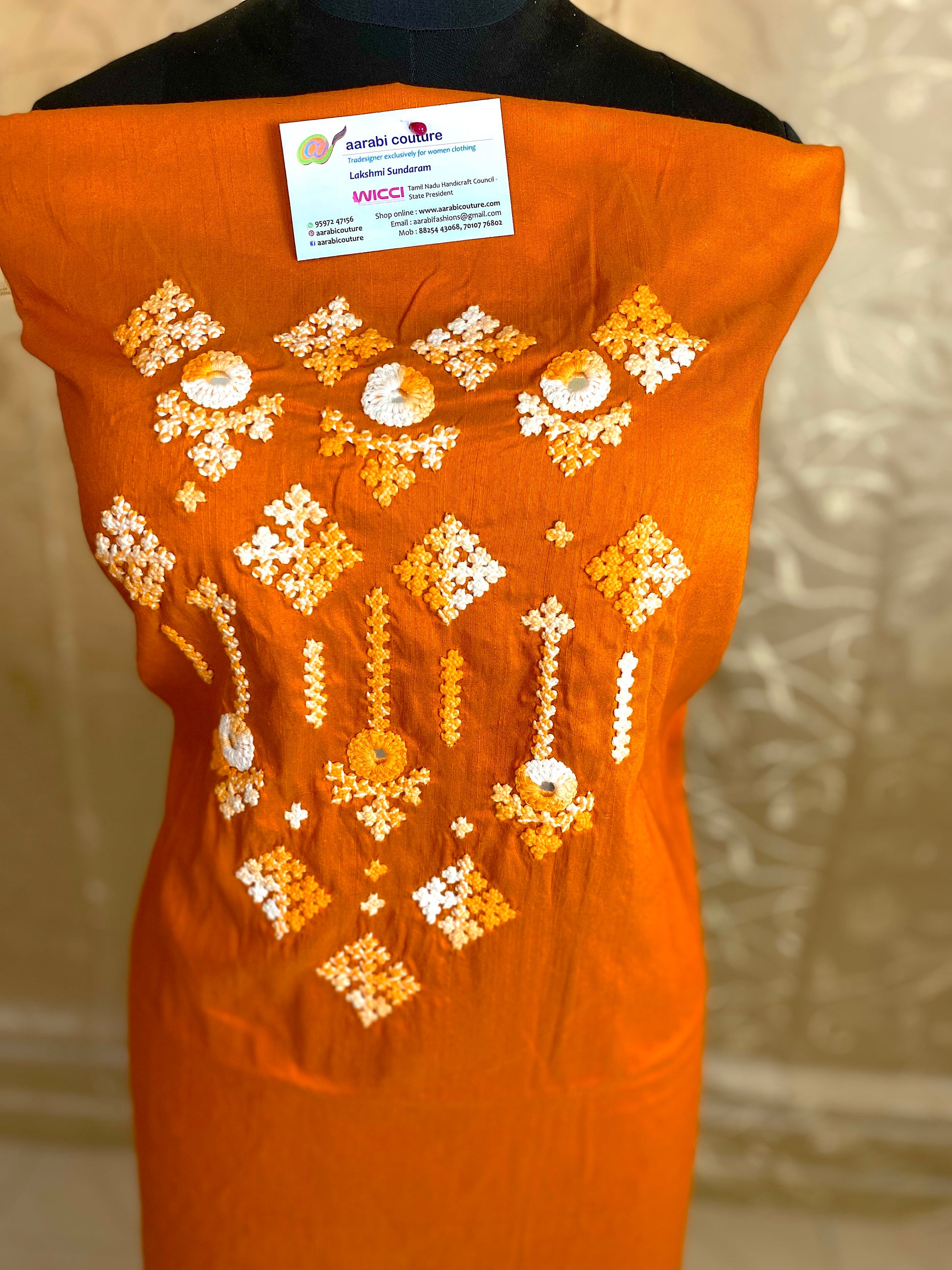 Hand embroidered KUTCH work on Dhupion Cotton material 44X100 INCHES