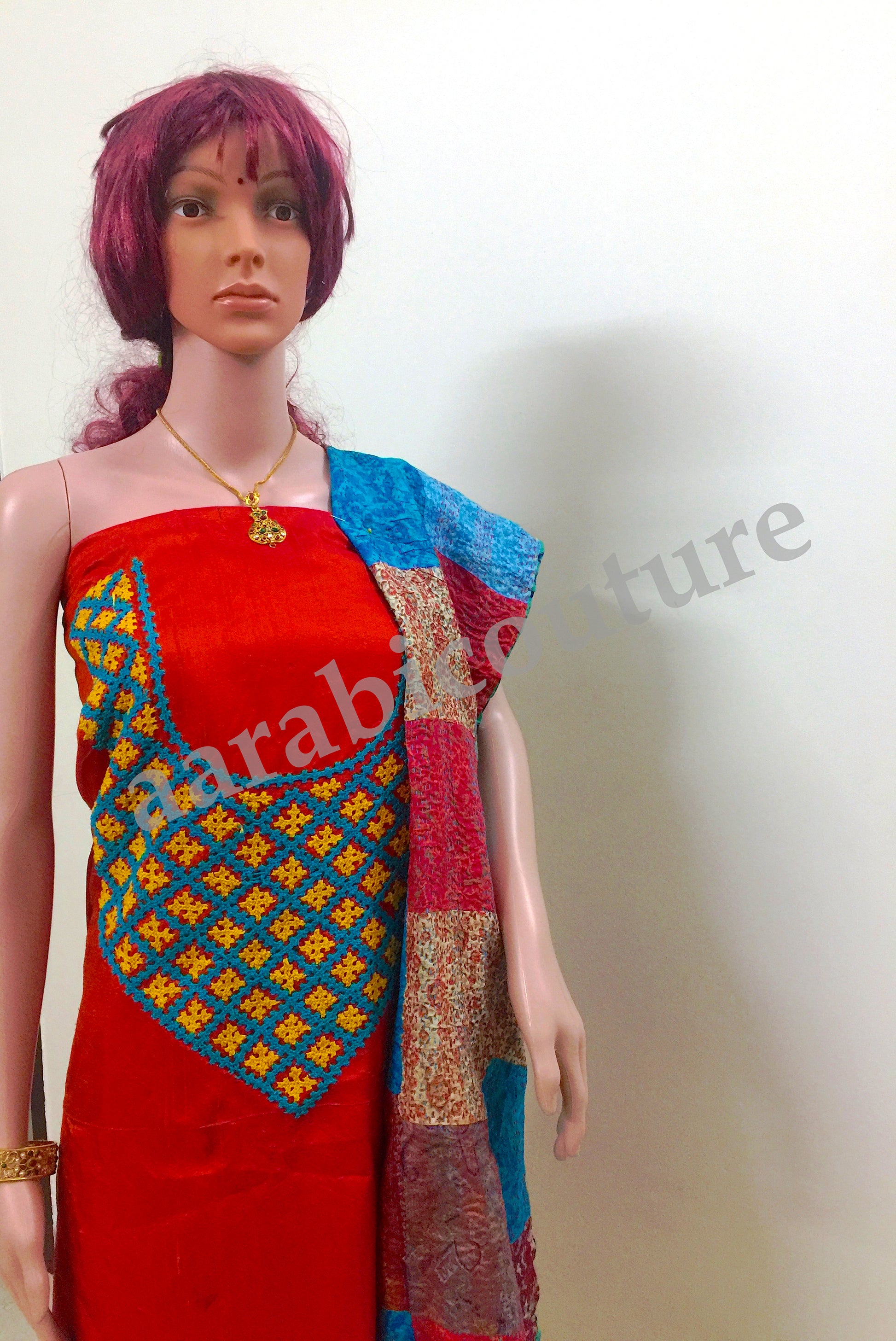 Hand embroidered KUTCH work on Dhupion Cotton material 44X100 INCHES