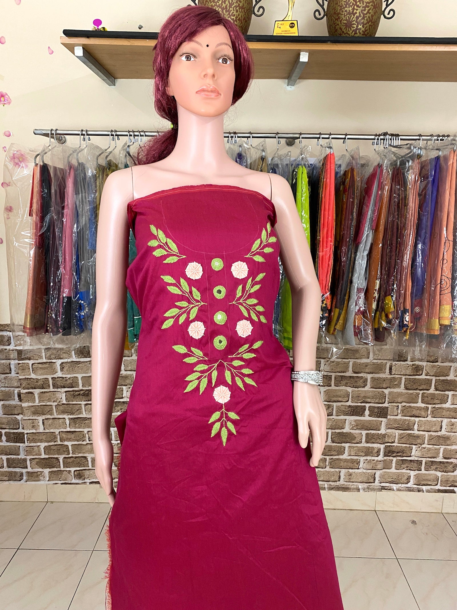 Hand embroidered Kashmiri work on DHUPION Cotton material. 2.5 mtrs.