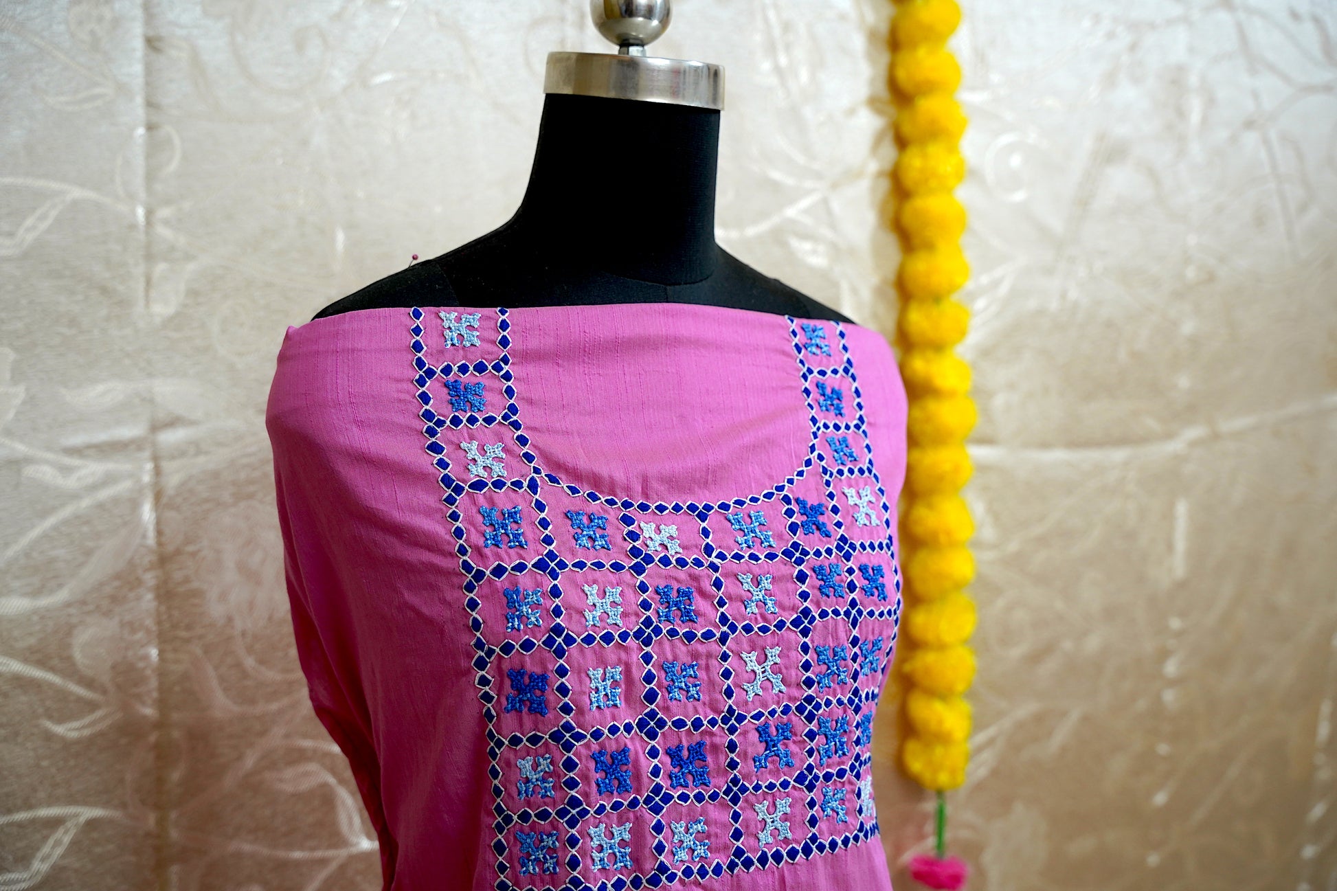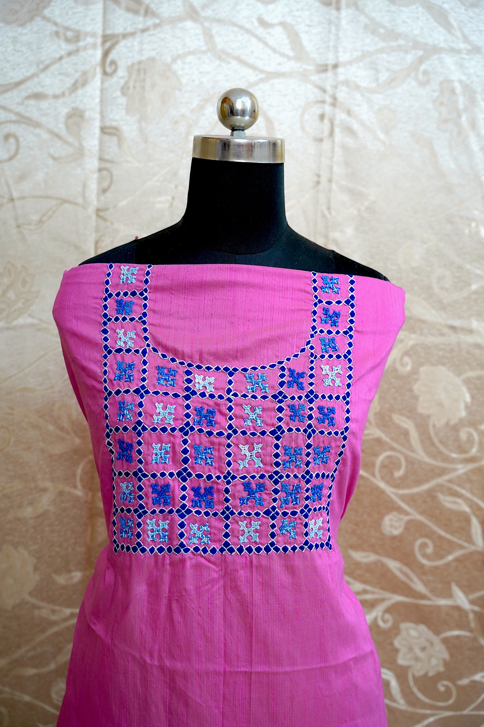 Hand embroidered KUTCH work on Dhupion Cotton material 44X100 INCHES