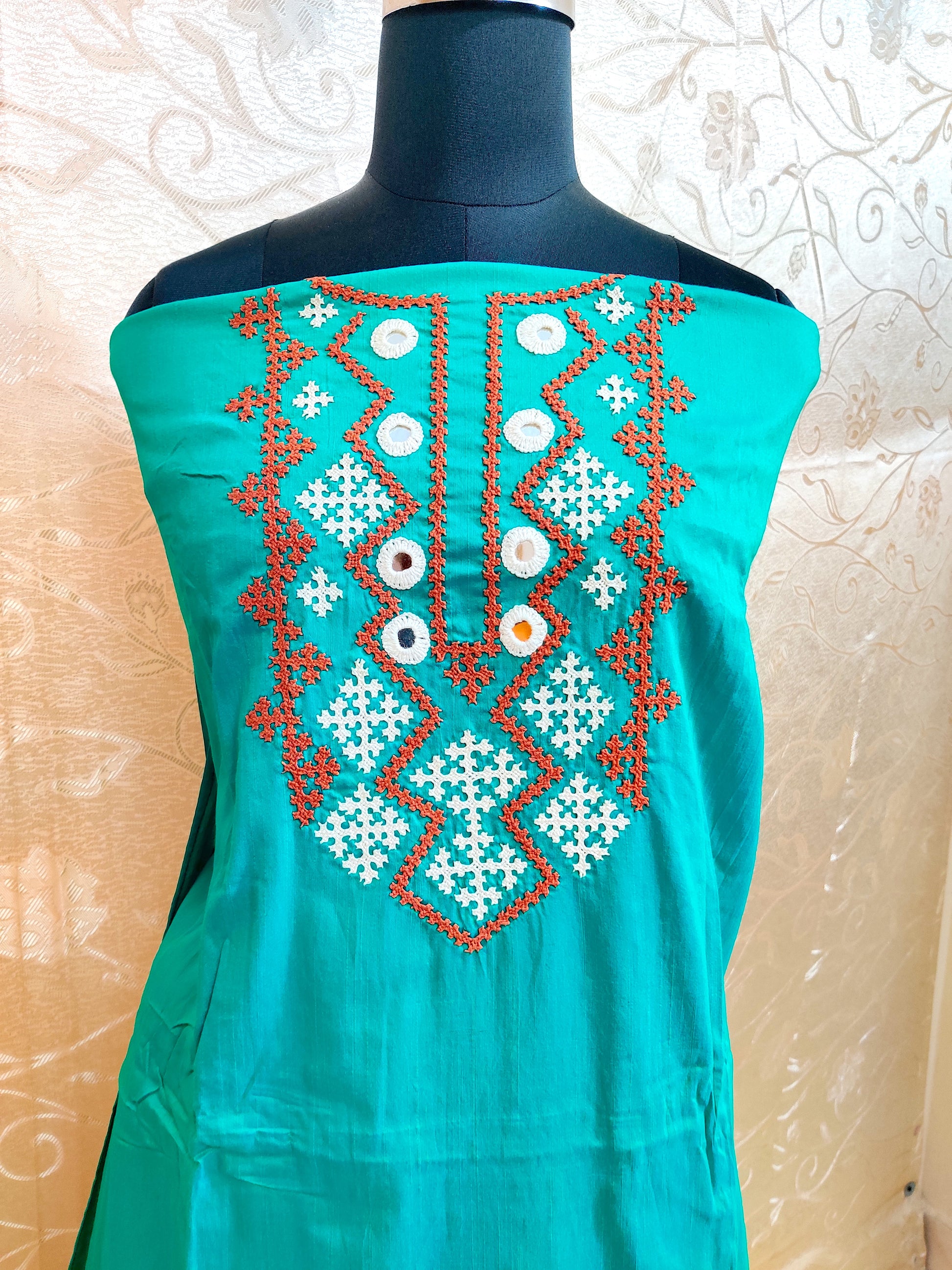 Hand embroidered KUTCH work on DHUPION COTTON material 44X100 INCHES