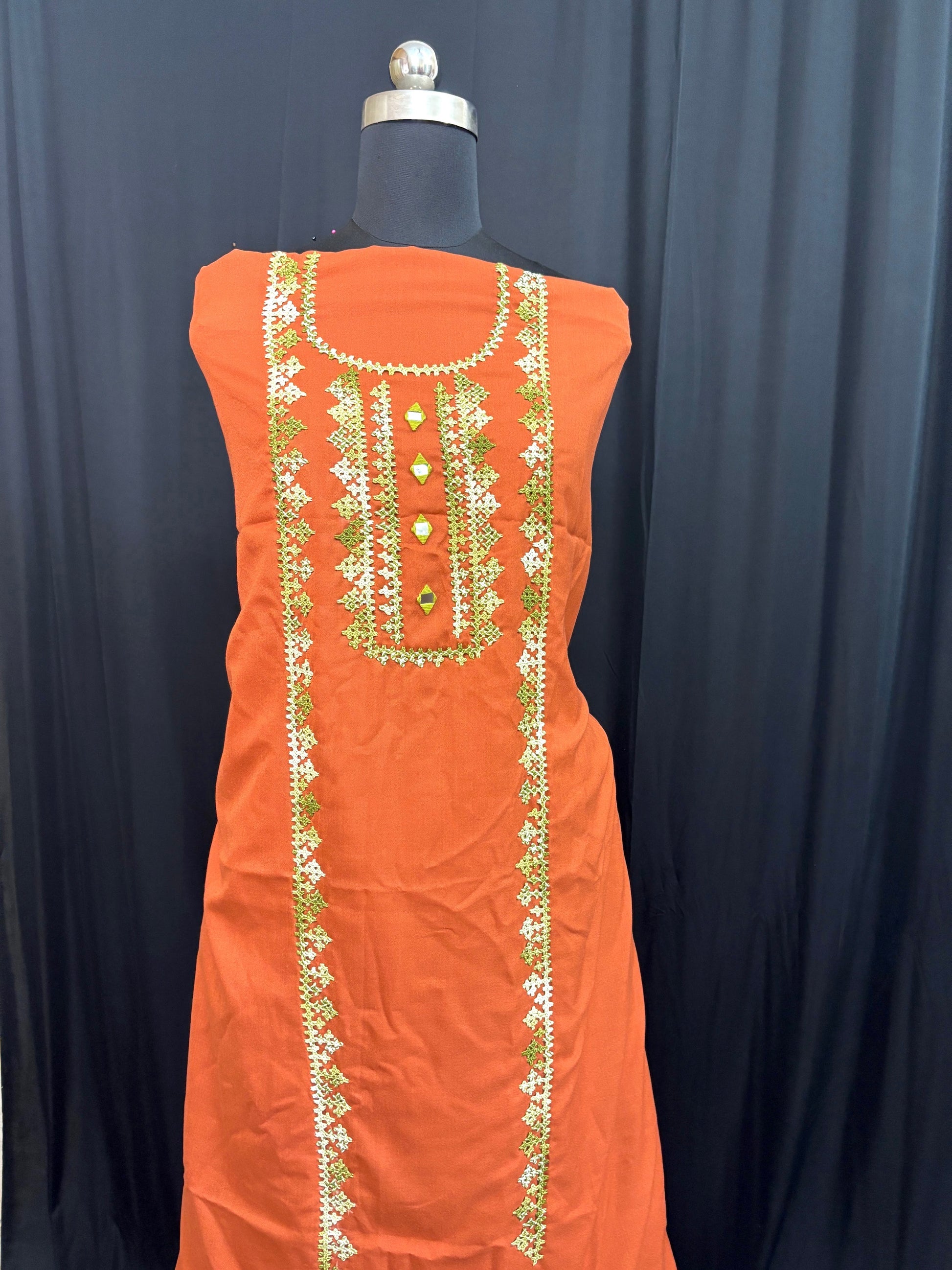 Hand embroidered KUTCH work on DHUPION COTTON material 44X100 INCHES