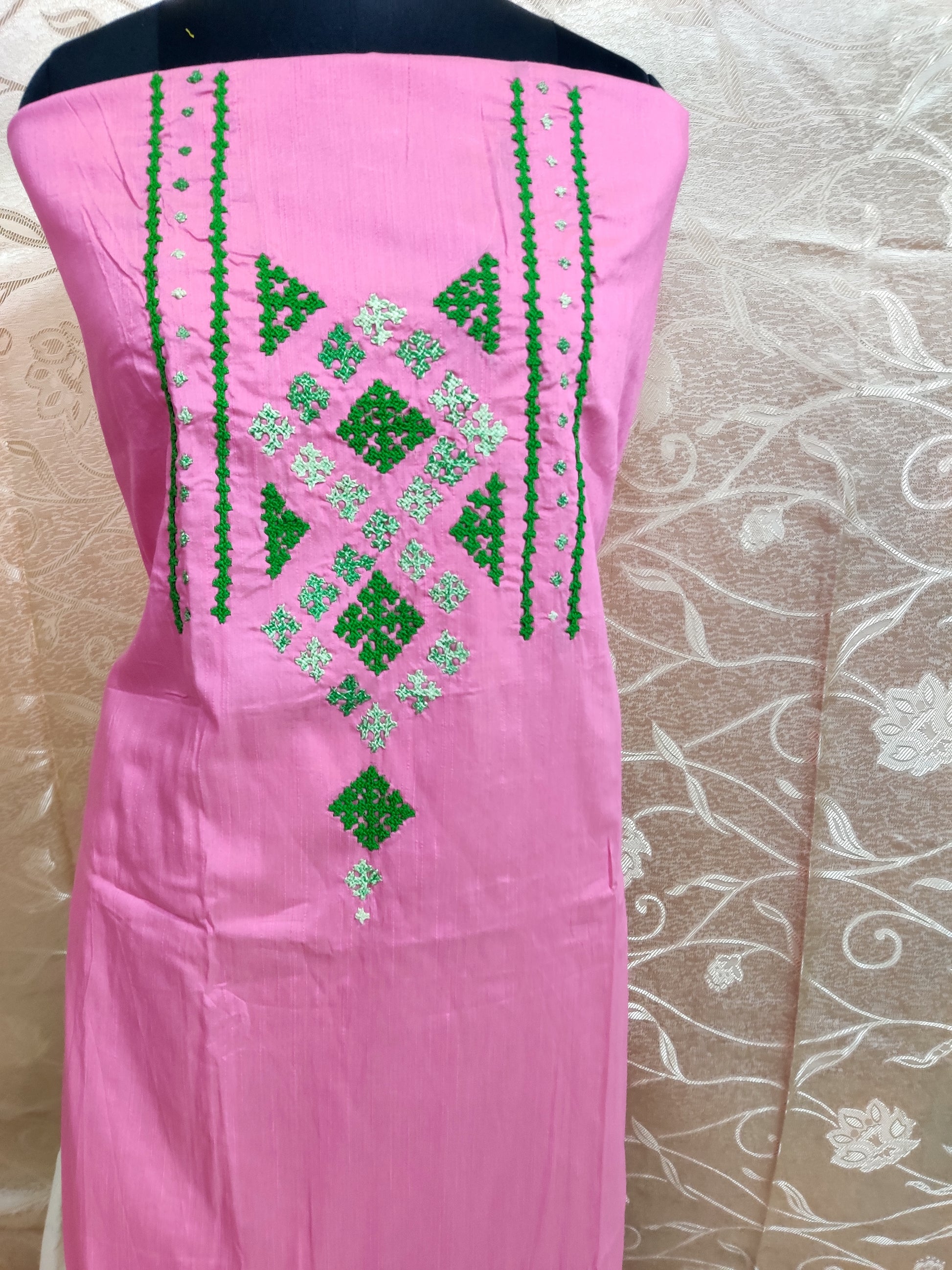Hand embroidered KUTCH work on DHUPION COTTON material 44X100 INCHES