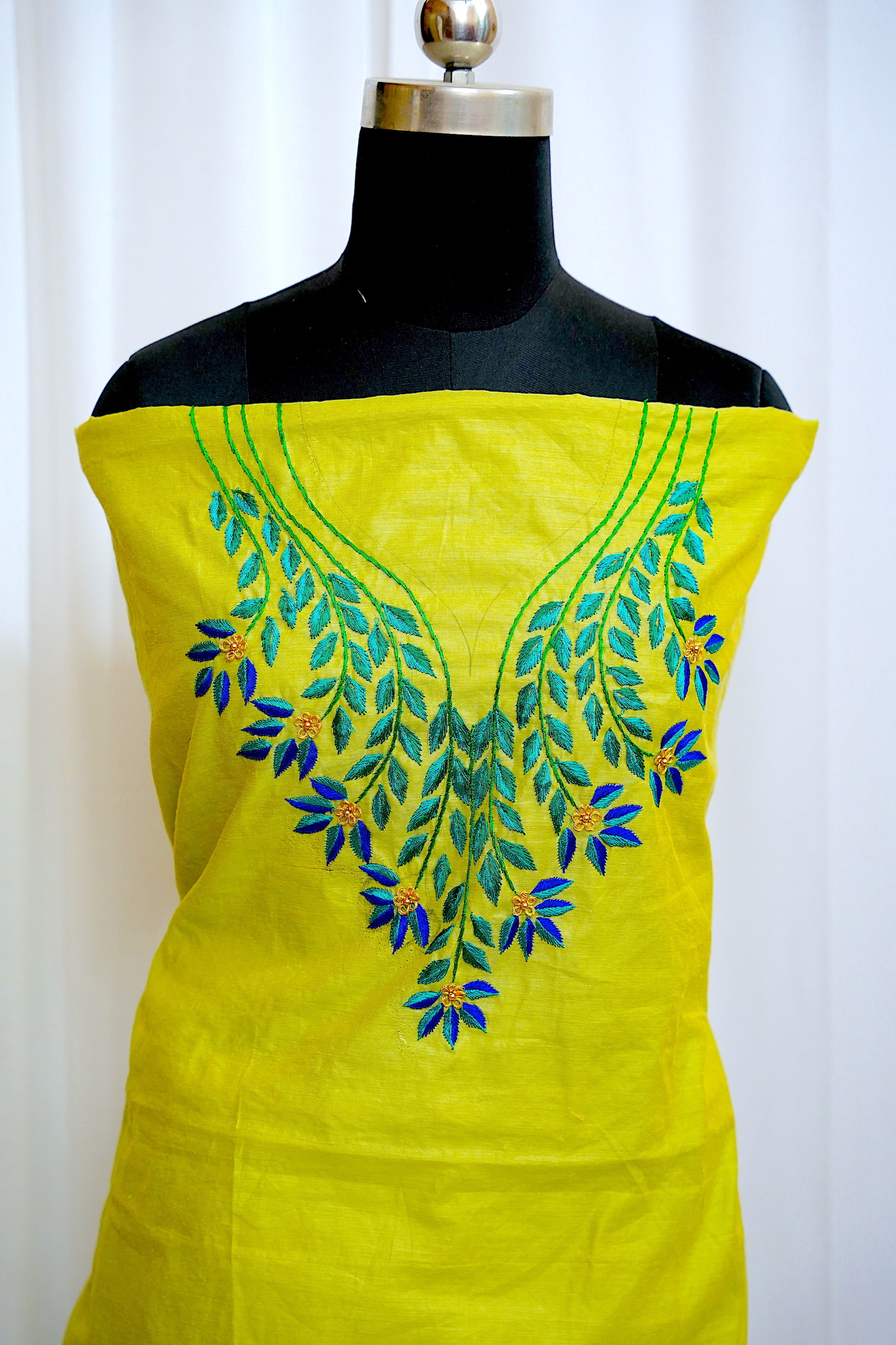 Hand embroidered Leaf stitch work on Chanderi Cotton material. 44X 100 inches